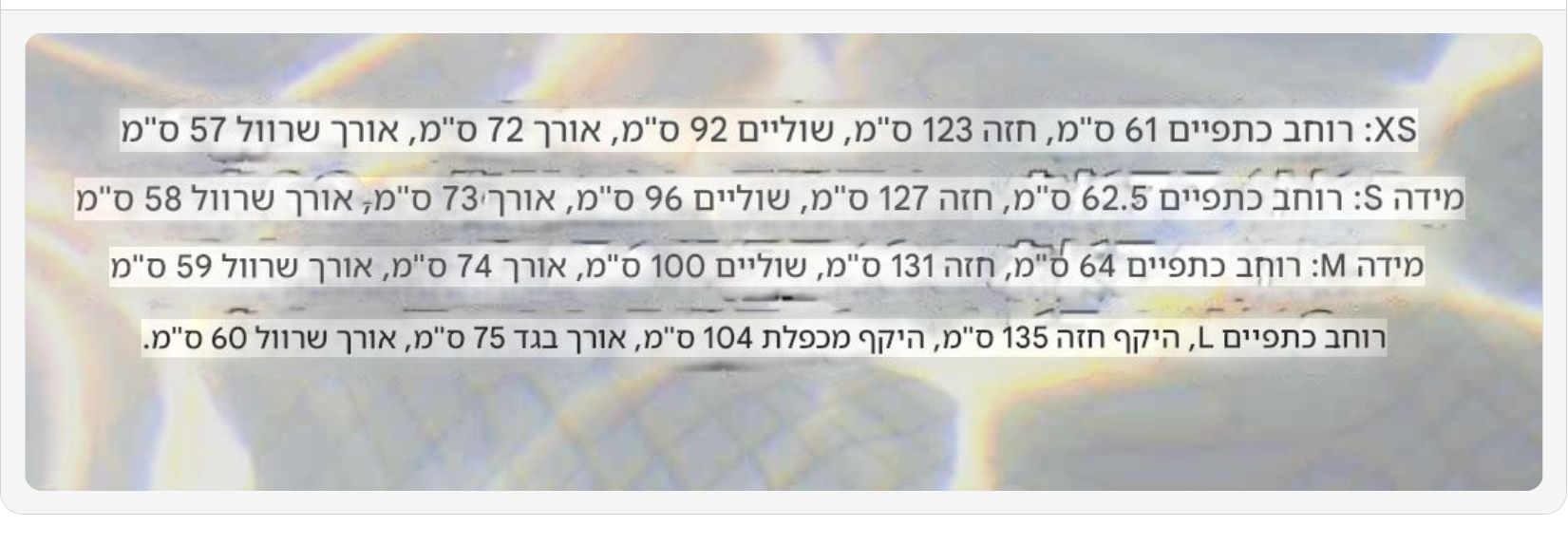 • נא לוודא מידה מתאימה בטבלת מידות טרם הזמנה •