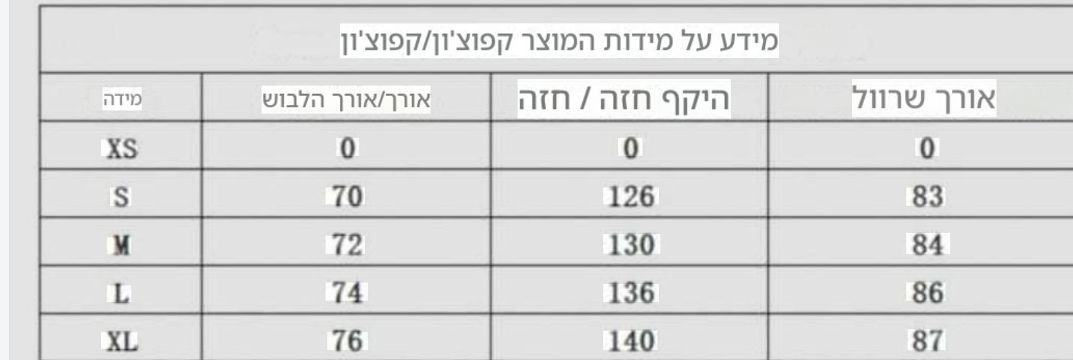 • נא לוודא מידה מתאימה בטבלת מידות טרם הזמנה •